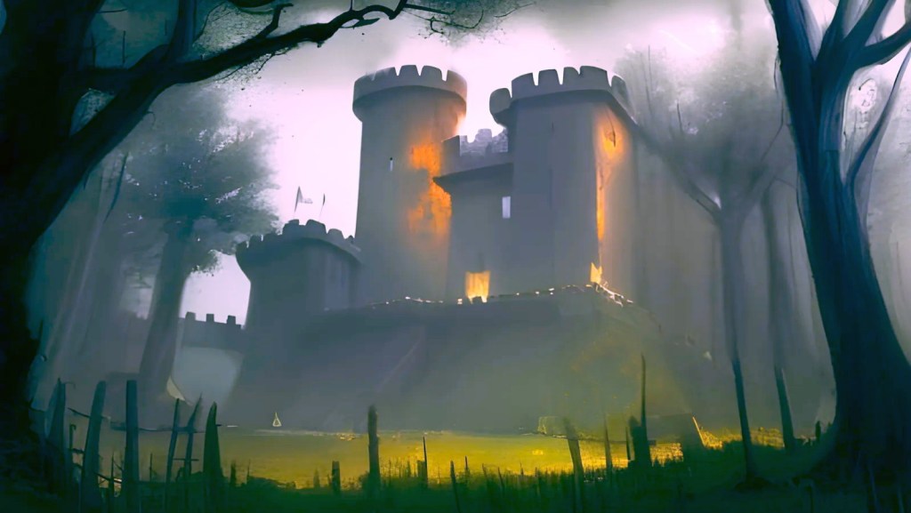 Next, from DOORWAY TO DOOM, we see Castle Serpenfane, ruled by the wicked King Wyvern. In the highest tower of the castle, the alchemist Doctor Delyrius conducts his unholy experiments.